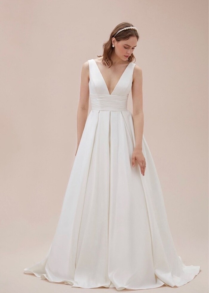 Sadece 1-2 saat giyildi Dışarı hiç çıkılmadı Nikah oteldeydi otel odasında giydim yukarıda nikah kıyıldı ve çıkardım Fotoğraf çekimi için bile dışarı çıkılmadı Bu yüzden tertemiz etekleri kendisi Gerçekten yeni gibi Optik beyaz değil kırık bir beyaz Göğüs kısmını kapatmak için olan parçayı ben taktırmadım ama duruyor istenirse taktırılabilir Arkası ayarlı beden olarak daraltılabilir ya da esnetilebilir