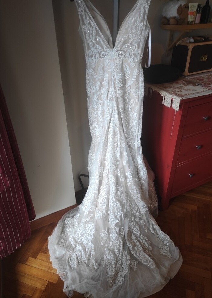 Uzun kuyruklu , önü yırtmaçlı çok begenerek aldığım inanilmaz zarif bir gelinlik. Yaninda bir uzun bir kisa duvağı ile birlikte gondereceğim. Yırtmacı istemezseniz kapattirabilirsiniz, haliyle bir kere o da nikah oldugu icin temiz durumda sadece kuyrugunda toz toprak olabilir onun disinda hic bir defosu sorunu yok.