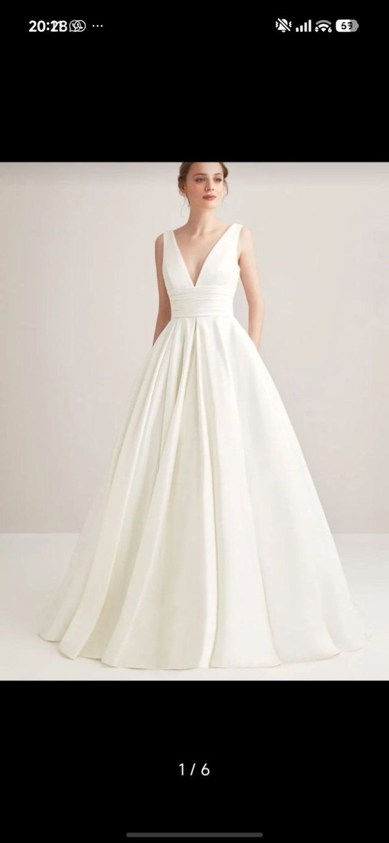 S beden gelinlik. Sadece çekimde 1-2 saat giydim çok güzel fotoğraflar ortaya çıkıyor. Kuru temizlemesi yapılmadı etek uçları biraz kirli ufak tefek çamur sıçramaları var herhangi bir sorunu yok. Göğsündeki ek parça çıkartılabilir. Ben boyunu kestirmeden giydim, boyum 160, 10 cm topuklu ile fotoğraftaki gibi durdu.