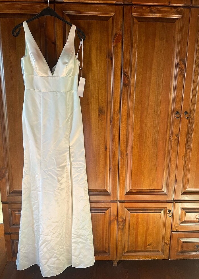Oleg Cassini Ivory gelinliği. 36 Beden, harika bir kalıp. Etiketi üstünde. Hiç giyilmedi. Oleg Cassini’den alındığı gibi askılı dış kabı da mevcut. Oleg Cassini stoklarında hiçbir bedeni yok. Gelinlik ya da abiye elbise olarak harika bir tercih. Sadece eteklerine ütü ve kişinin boyuna göre belki bir kısaltılma gerekiyor.