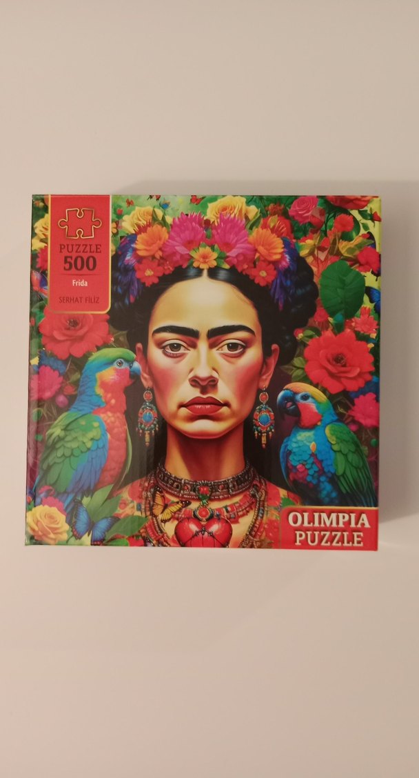 Olimpia Puzzle, 500 parçadan oluşan canlı renkli Frida tasarımını içerir. 2. El üründür. Kullanılmamıştır.