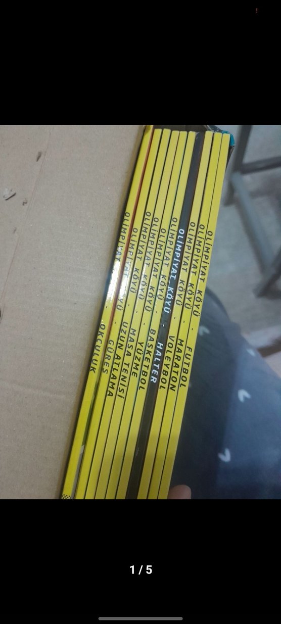 Olimpiyat Köyü serisine ait sarı kapaklı kitap seti, futbol, dövüş sanatları ve gençlik gelişimi gibi konuları içerir.