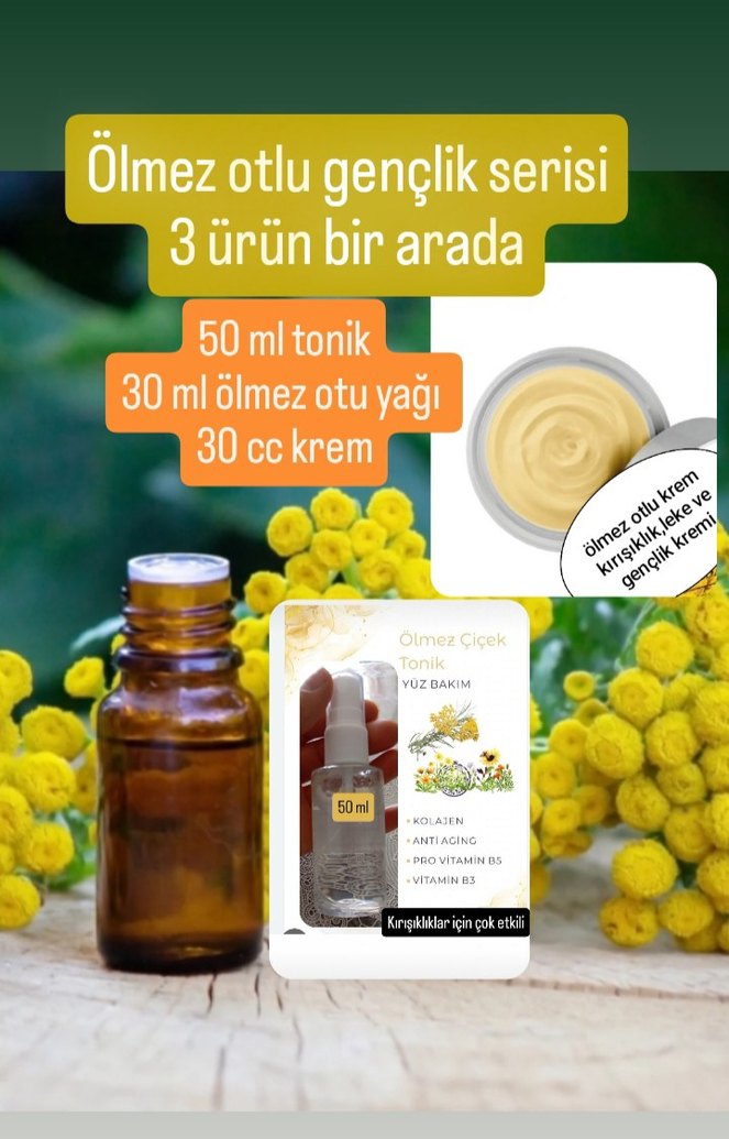 en dogalindan sizler için bu seti hazırladık. isminin özelliğini taşıyan bu bitkiyle ciltdeki yaşlanma belirtileri ni azaltmada ve kırışıklıklarda çok etkilidir. kısa süreliğine bu fiyatdadir. dilerseniz ürünleri tekli ilan olarakta alabilirsiniz #olmezotu#olmezotukremi#olmezotutonik#bitkiselkremler#altinotuyagi