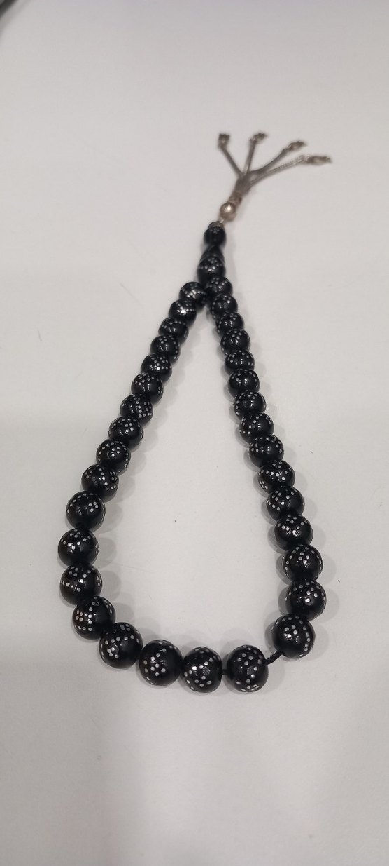Oltu Tesbih yogum Gümüş işlemeli Erkekler için siyah, geleneksel tarzda, yuvarlak ve parlak boncuklardan oluşan tesbih.
