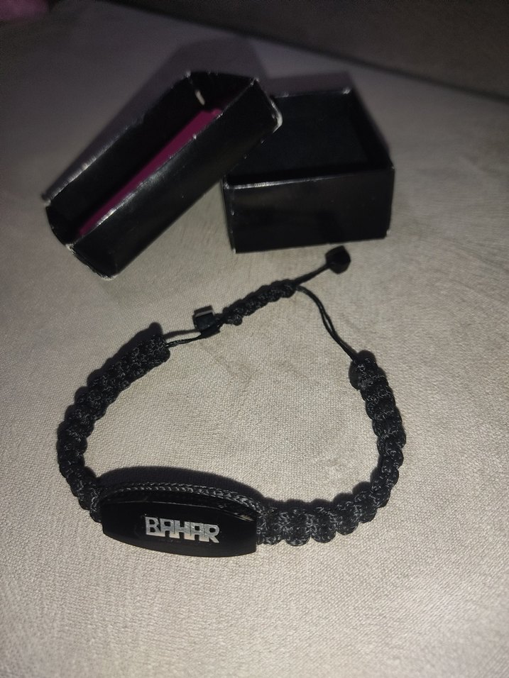 Ayarlanabilir örgülü bantlı siyah Oltu taşı bileklik, üzerinde BAHAR yazısı bulunur. Küçük siyah kutu ile birlikte gelir.