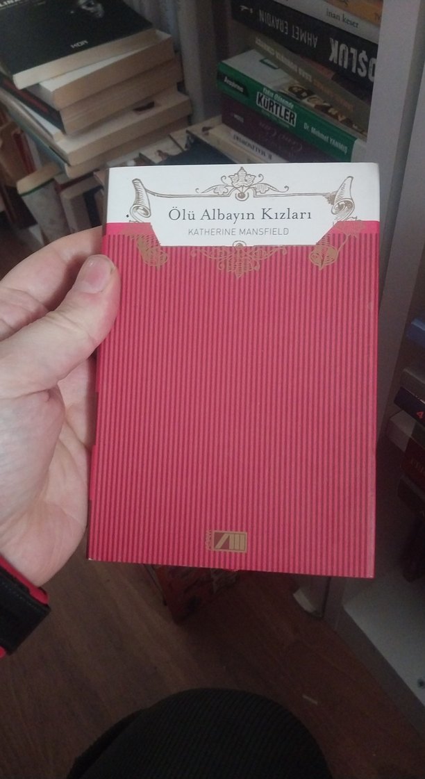 Katherine Mansfield'in "Ölü Albayın Kızları" adlı romanı, kırmızı çizgili ve şık tasarımlı kapakla sunuluyor.