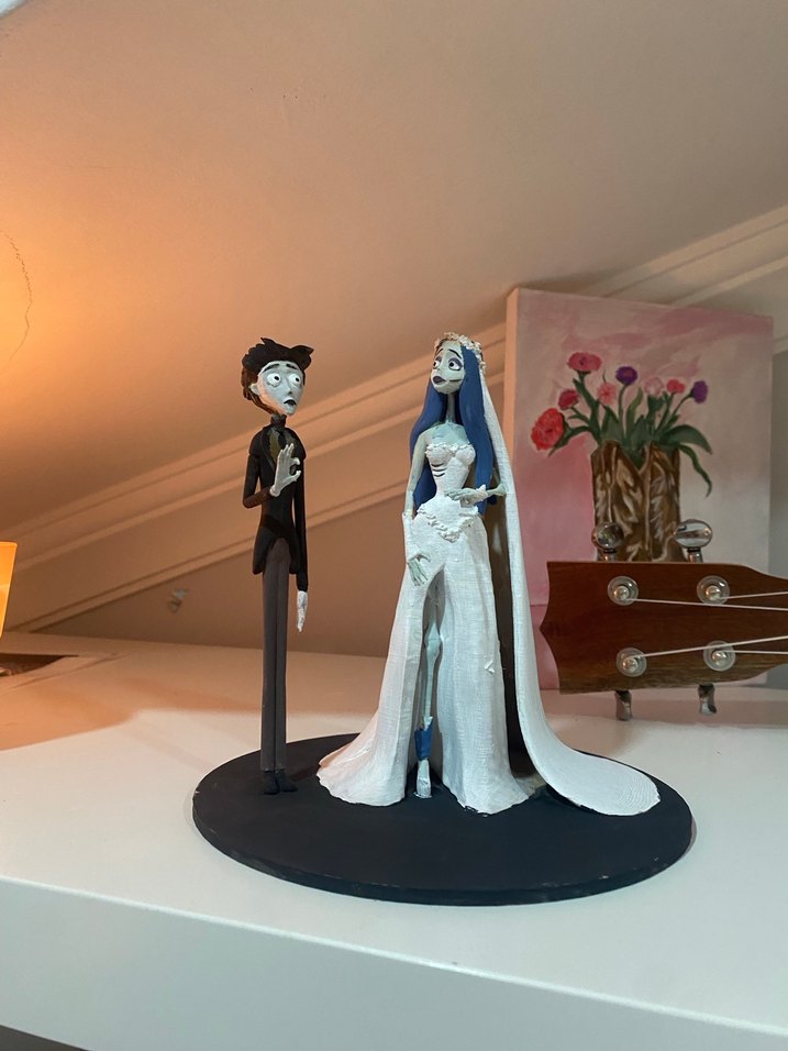 Daire şeklinde tabanda duran, Ölü Gelin filmindeki “Victor ve Emily” karakterlerinden esinlenmiştir. 3D yazıcıdan basılıp, akrilik ile renklendirilmiştir. 16cm boyu vardır aynı şekilde taban genişliği de en bakımından 16cm’dir.