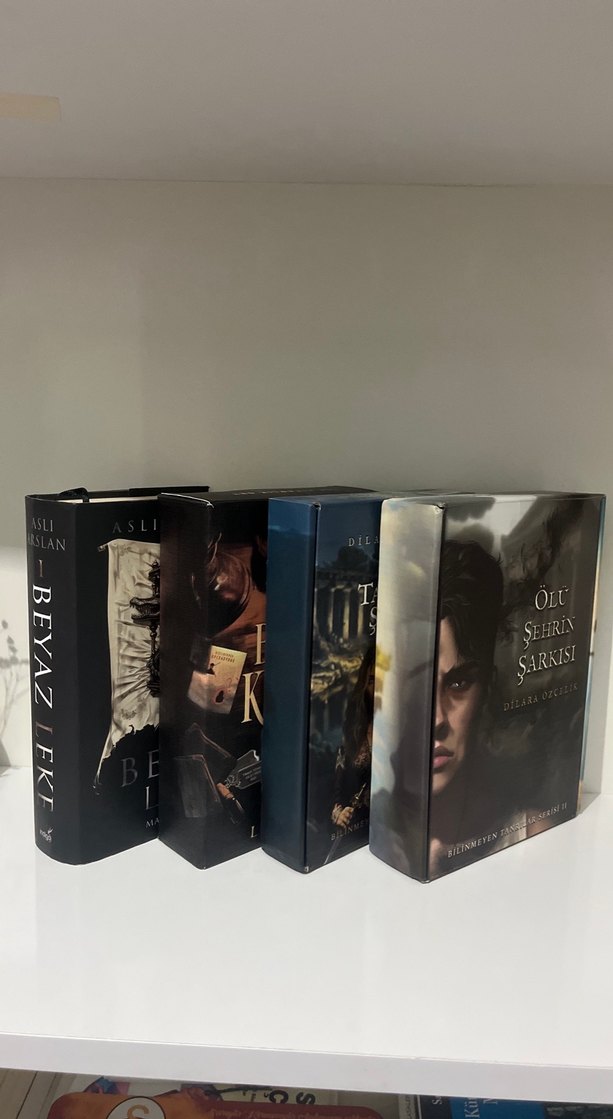 Ölü tanrının şarkısı ve ölü şehrin Şarkısı kitapları kutulu setleri hasarsız defosuz yeni kitaplar bülbülü kapanı birinci kitap kutulu hasarsız defosuz ve beyaz leke kitabı hasarsız defosuz dört kitap toplam üç kutulu ssen oluşan oldukça uygun fiyatta bir ürün