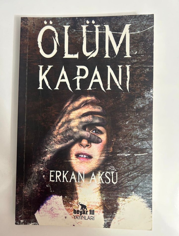 Erkan Aksu'nun "Ölüm Kapanı" adlı romanı, Beyaz Fil Yayınları tarafından yayımlanmıştır. Kapakta bir el tarafından kısmen kapatılmış yüz yer almakta.