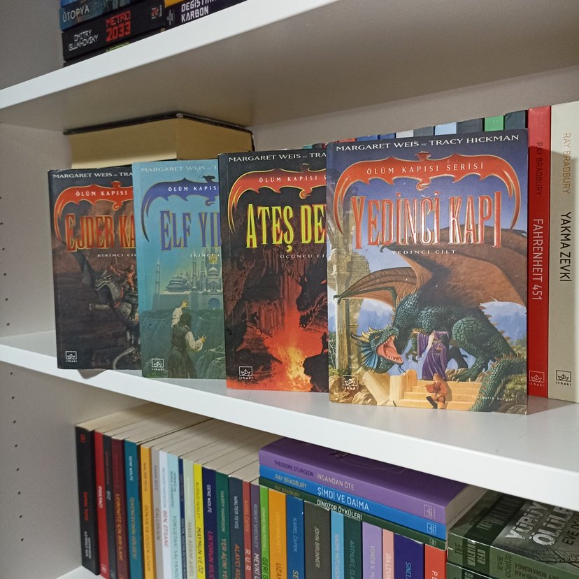Ejder Kanadı - Elf Yıldızı - Ateş Denizi - Yedinci Kapı kondisyon iyi durumda defo yok iki kitapta raf yorgunluğu hafiften var.