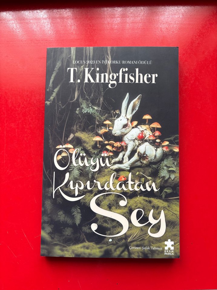 T. Kingfisher'in Locus 2023 En İyi Korku Romanı Ödüllü "Ölüyü Kıpırdatan Şey" romanı, mantarlarla çevrili beyaz bir tavşanın olduğu karanlık orman temasına sahip. Bir kere okundu. Hiç hasarı yoktur