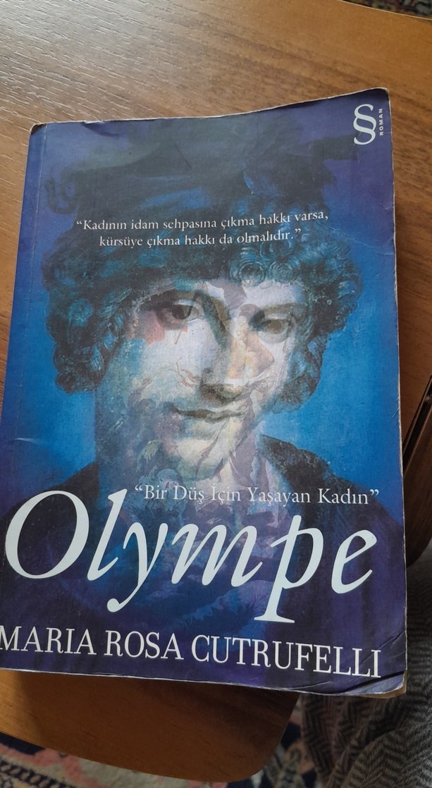 Maria Rosa Cutrufelli'nin "Olympe - Bir Düş İçin Yaşayan Kadın" adlı romanı, kadın hakları ve adalet temalarını işler. Kapakta bir yüz resmi ve kadınların konuşma hakkıyla ilgili bir alıntı yer alır.