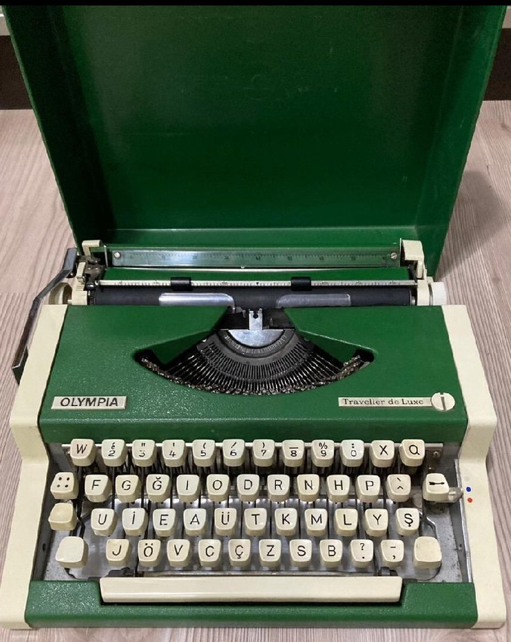 İyi durumda yeşil Olimpia daktilo. Çalışıyor, yağlanıp bakım yapılması yeterli.