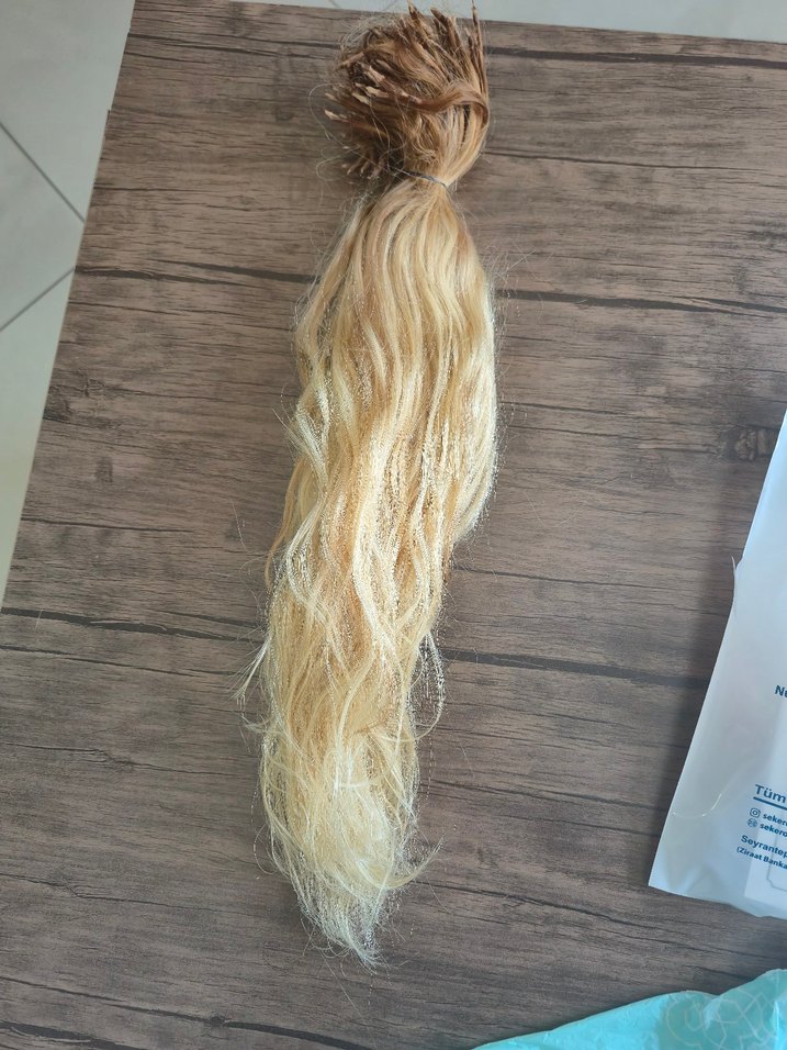 62 cm 223 gr 280 adet gerçek saç. artık kullanmadığım için satıyorum sadece uçlarını yaptiracaksiniz