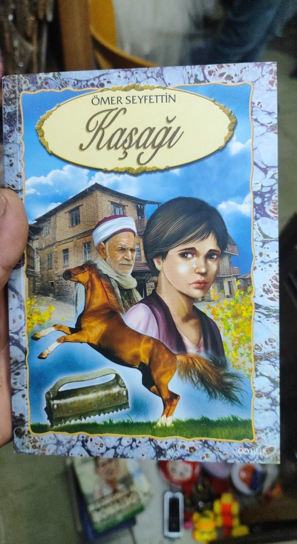 Ömer Seyfettin'in 'Kaşağı' adlı hikaye kitabı, kapakta karakterler ve bir at resmiyle klasik bir öykü sunuyor.