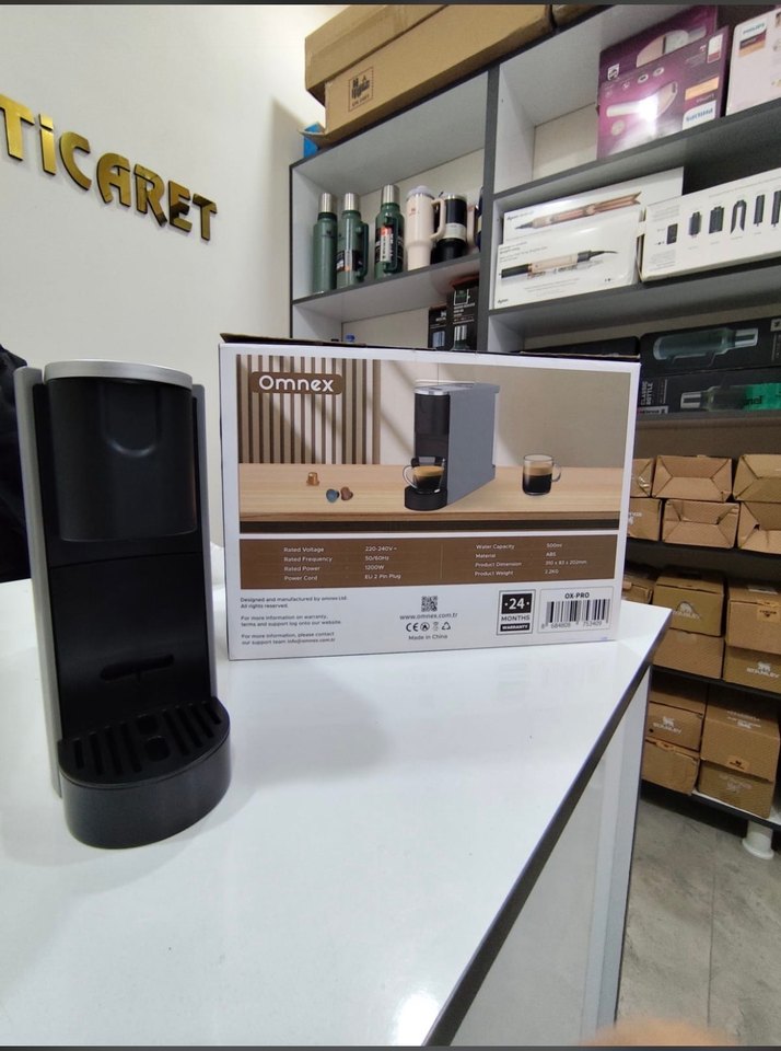 Omnex kapsül kahve makinesi, su haznesi ve damlama tepsisi ile kompakt tasarıma sahiptir. Kolay kullanım sağlar. ☕