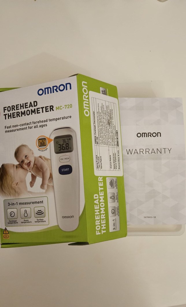 Omron MC-720 temassız alından hızlı ateş ölçümü sağlar. Alın, nesne ve yüzey sıcaklığı ölçen 3'ü 1 arada fonksiyonları ve garanti belgesi içerir. ️