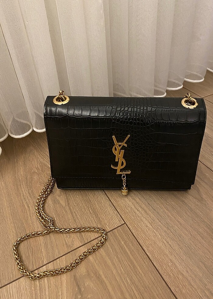 Gold Detaylı timsah derisi desenli suni deri omuz çantası Öndeki logo kısmının altındaki zincirin bir parçası düştü onun dışında deformesi yoktur
