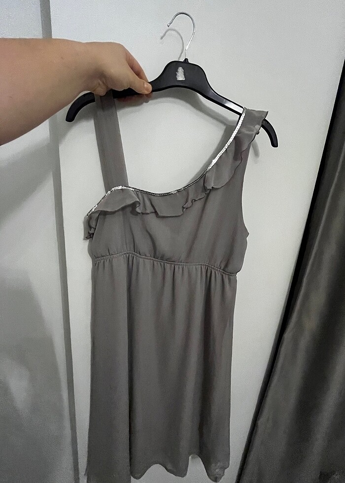 Omuz detaylı mini elbise bir kez giyildi 38-40 beden göğüs kısmı lastikli efil efil yaz elbisesi