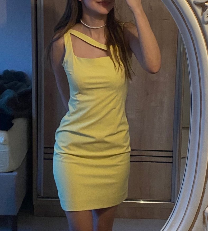 normalde vücuda oturan bir elbise, benim bedenim olmadığı için bol duruyor. temiz ve hasarsızdır bir gece giyildi marka temsilidir
