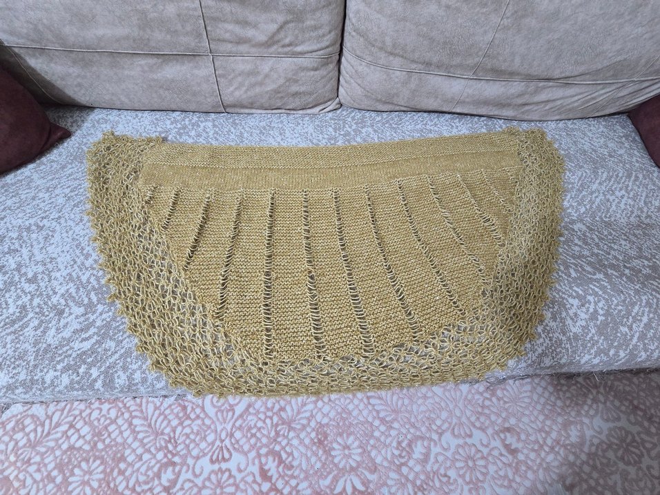 Dantel detaylı, simli ip, el örgüsü, 102×53 cm ölçülerinde, kadın omuz şalı. Sıfır kullanılmadı, ihtiyaç fazlası. Pazarlık var. Yer Ankara Sincan elden teslim var. TOPLU ÜRÜN ALIMINDA İNDİRİM YAPIYORUM.