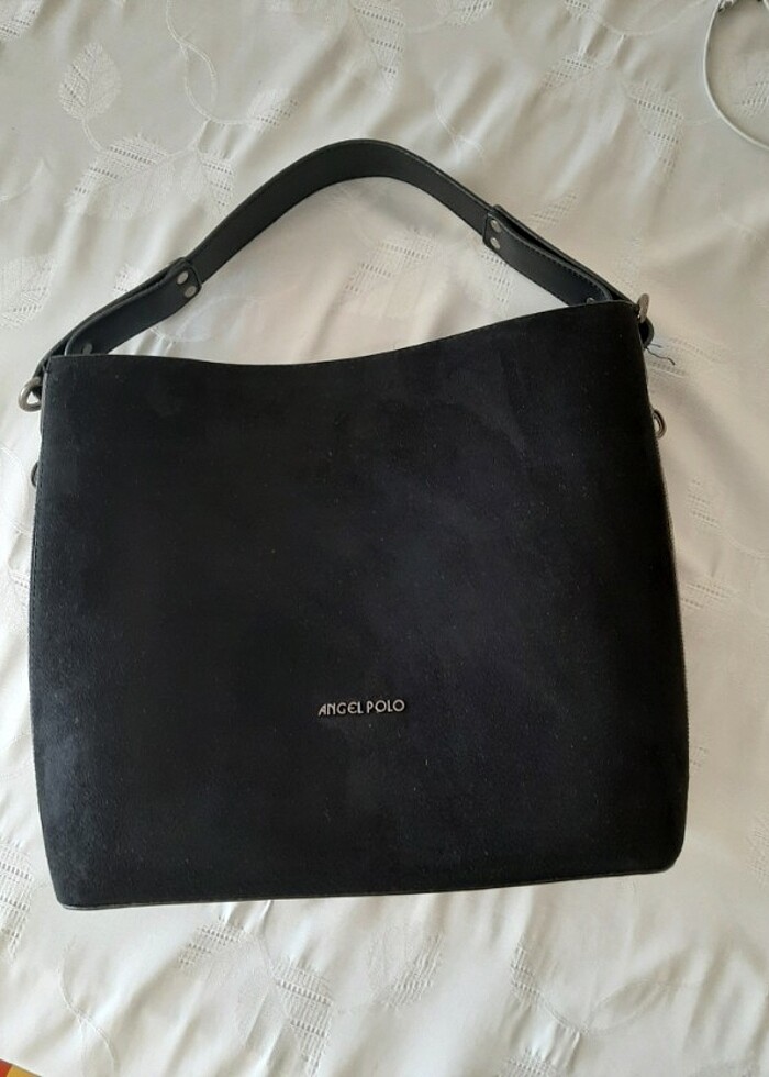 Angel polo marka süet çanta. Yanları taşlıdır. Hem omuz hem de yan çanta olarak kullanılabilir