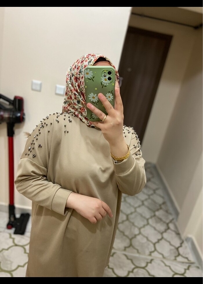Omuzları taşlı ikili takım Tuniğin aşağı kısmında hafif boya lekesi var resimde ekli L beden