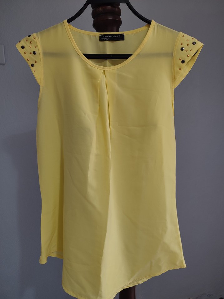 Omuzları zımba detaylı bluz bedeni XS bedendir. Az kullanılmıştır. Normal kesimdir