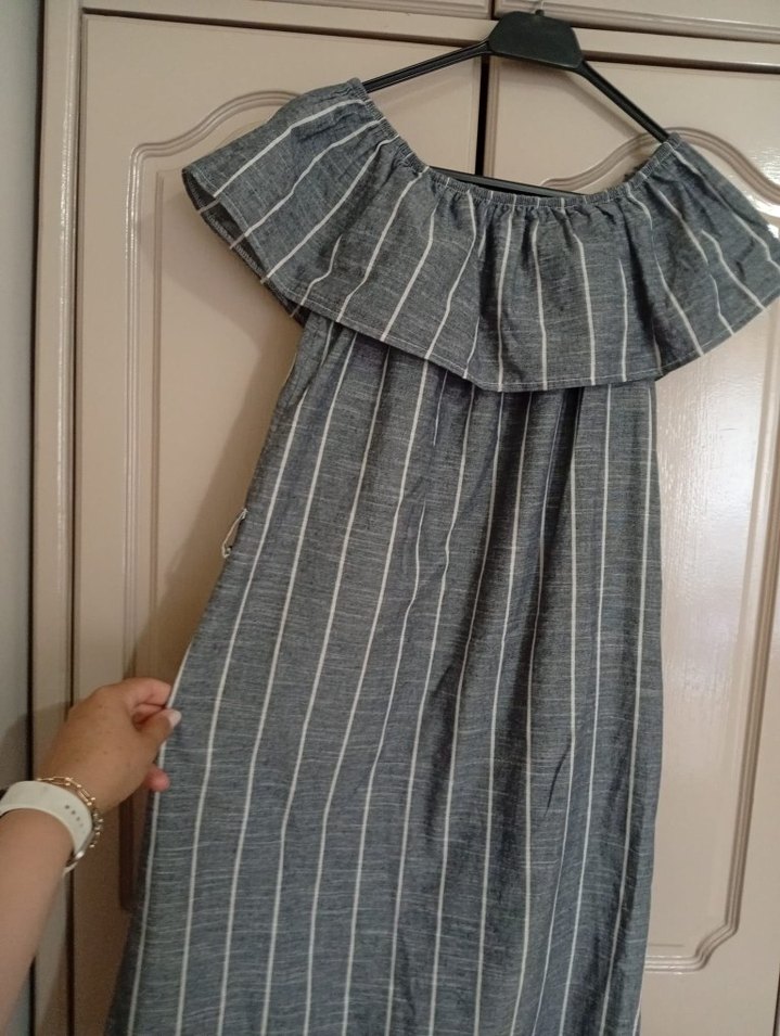 midi boy elbise omuzları düşük fırfırlı belinde kemerle kullandım ben 38_40 beden arası uyumlu
