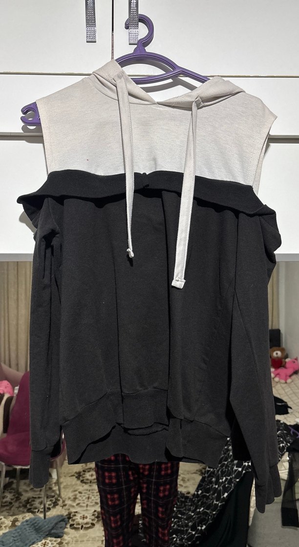 siyah beyaz bir sweatshirt uygun fiyatlı