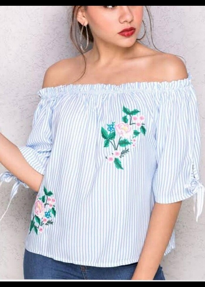 Omzu düşük çizgili açık mavi bluz nakış detaylı Bedeni olmadığı için satıyorum. Bir sıkıntısı yoktur