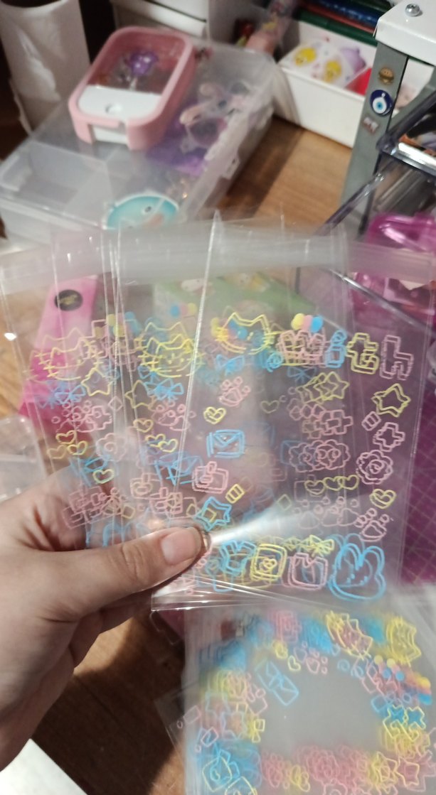 Pastel tonlarda, kedi, kalp, yıldız ve çiçek gibi çeşitli sevimli şekiller içeren tırnak süslemeleri.