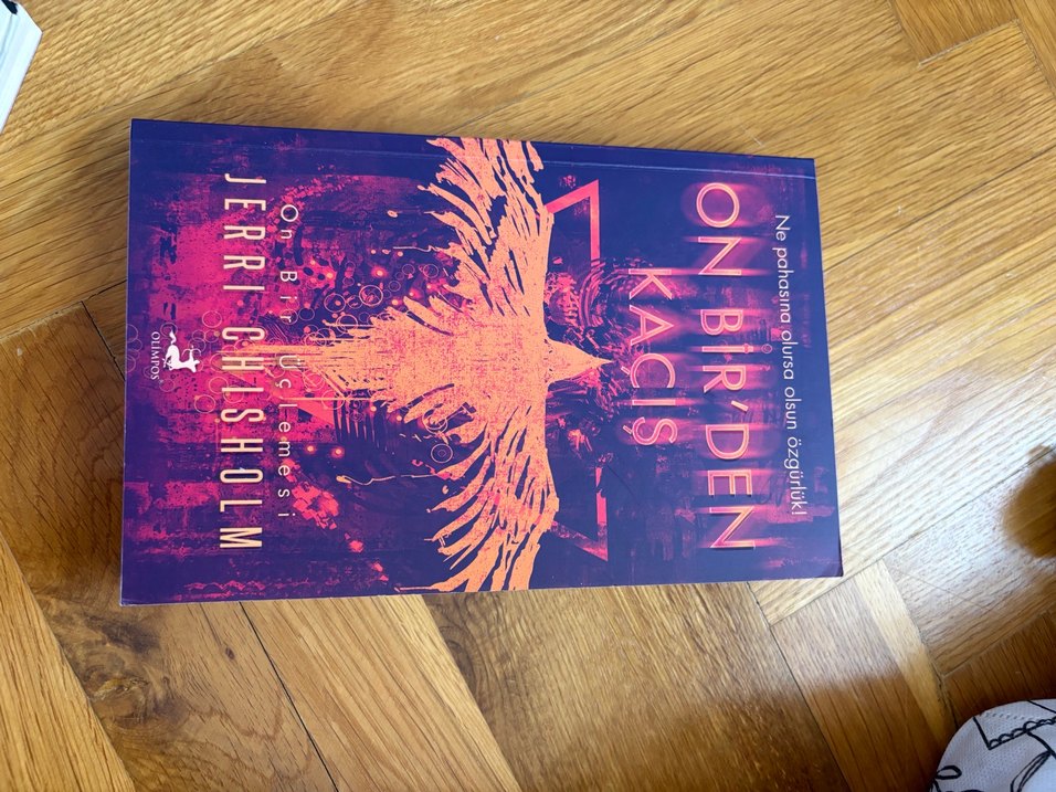 "On Bir'den Kaçış" özgürlük ve kaçış temalarını işleyen bir roman olup, kapakta dikkat çekici bir anka kuşu illüstrasyonu bulunmaktadır.