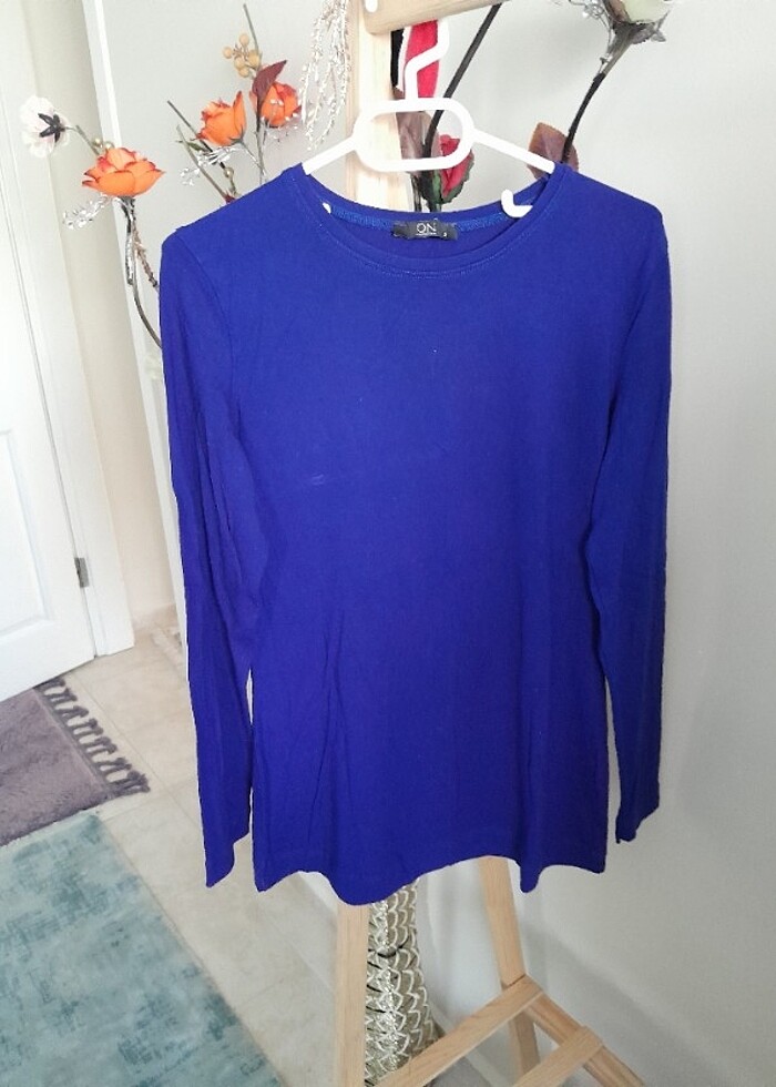 Mavi yakasiz bluz