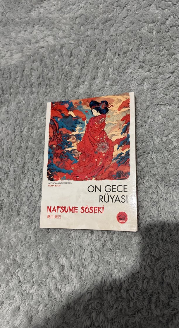 Natsume Soseki'nin "On Gece Rüyası" adlı romanı, renkli ve geleneksel kıyafetli bir kadını betimleyen kapak görseline sahip.