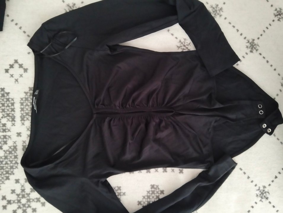 önden küçük dekolteleri olan siyah badi