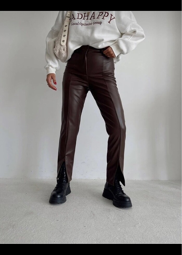 Önden yırtmaçlı deri pantolon