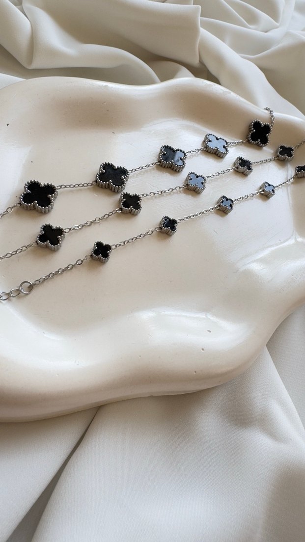One Cleef bileklik siyah -Silver