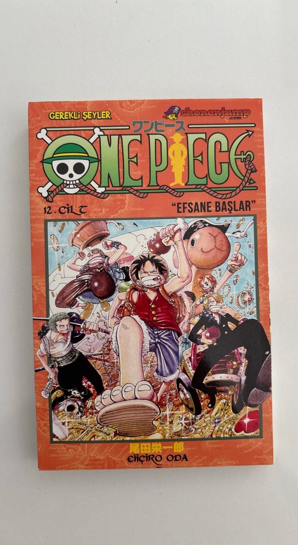 One Piece çizgi roman serisinin 12. cildi olan 'Efsane Başlar'. Canlı kapak resmi ve ana karakterler bulunur.