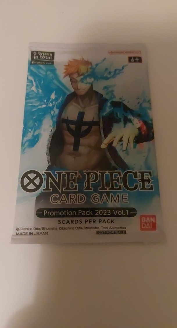 One Piece kart oyunu 2023 Vol.1 promosyon paketi, pakette pakete özel 5 adet kart bulunmaktadır