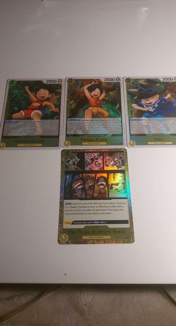 4 Adet parlak kart 3 adet karakter (Sabo.Ace.Luffy) 1 event kartı
