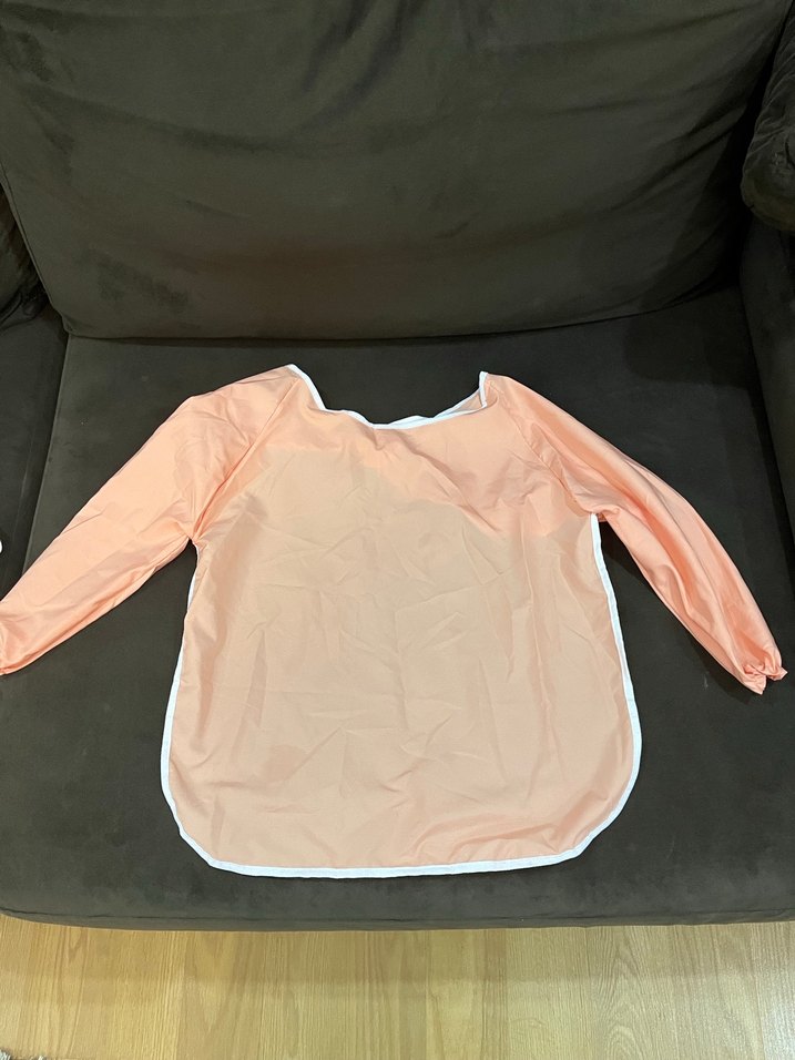 Pastel pembe renkli, uzun kollu ve desensiz bebek önlüğü, bebeğinizin kıyafetlerini korur.