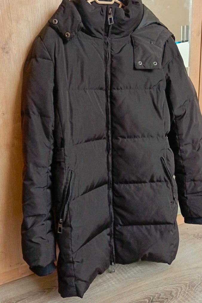 Kalın ve ağır bir mont. Çok sıcak tutuyor. yakasının ordaki parlak çizgi haricinde kusuru yok. Kapüşonun yakasını iliklemezseniz görünmüyor zaten. Manşetlerinde hafif pamuklanma var. İçinde kuş tüyüne benzer tüyler var. Kapüşonun kürkü de var. Son fotoda göstermeye çalıştım. Rengi siyah. Işıktan dolayı yanar dönerli çıktı fotolarda.