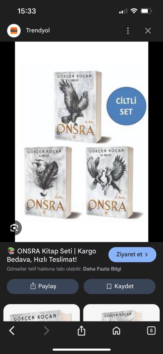 Gökçen Koçan'ın Onsra adlı üç ciltli romanından oluşan kitap seti.