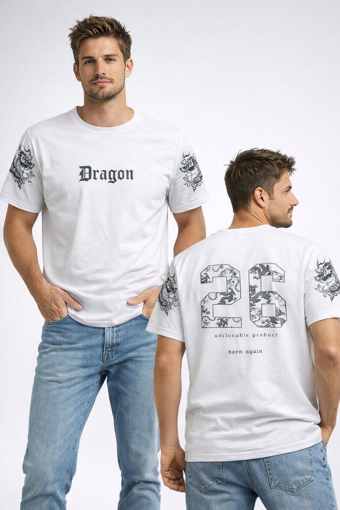 ONTU Dragon Baskılı Oversize T-Shirt Beyaz (L / XXL Uyumlu)