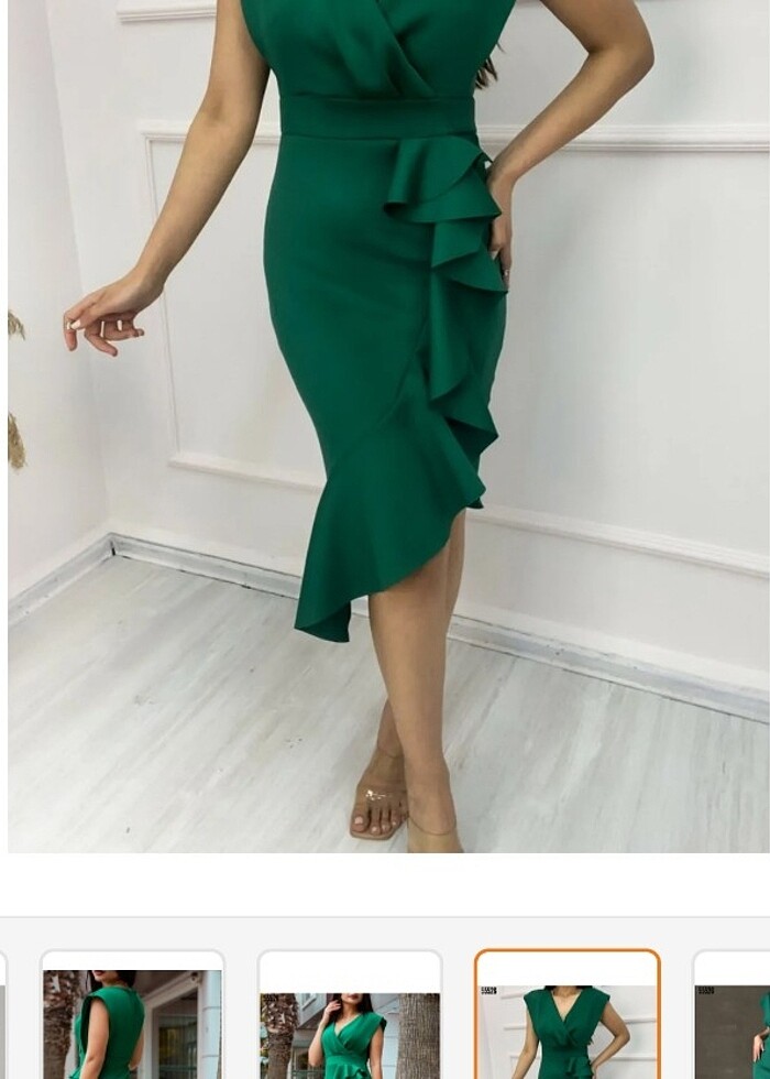 Önü Fırfır detaylı midi elbise