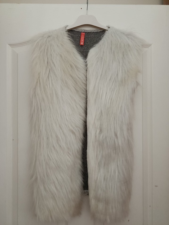 önü kırık beyaz arkası Gri Kürklü Kadın Yelek