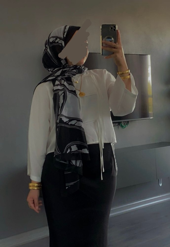 Önü kısa arkası uzun beyaz tesettürlü gömlek