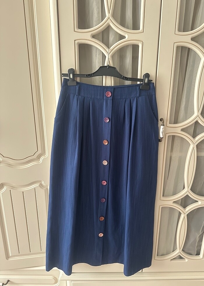 Renkli düğme detayı vardır/ astarlıdır. Önünde hafif pileleri vardır sayılı giydim. Tertemizdir