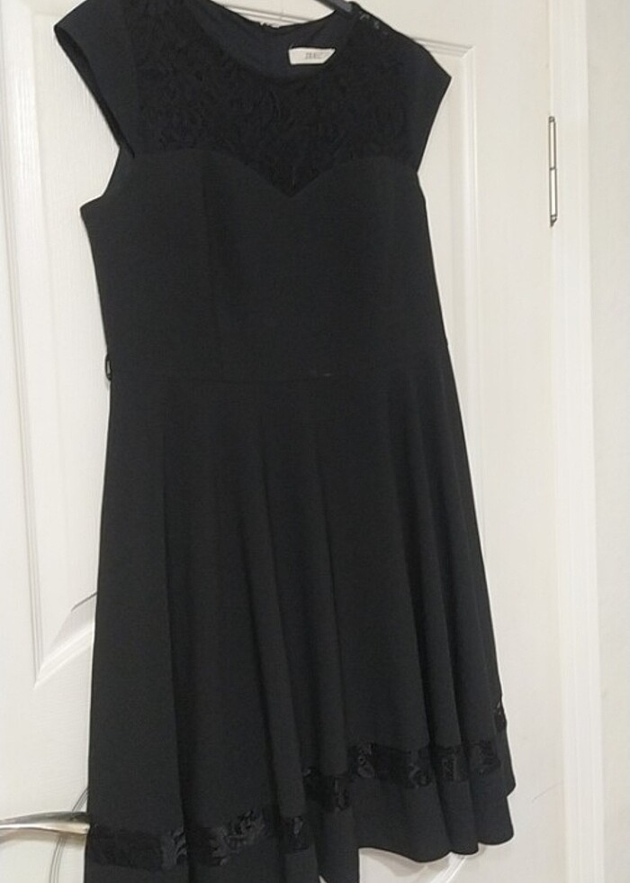 siyah midi abiye alt ve üst kesimleri dantel oymalı etek bölümü gayet geniş ve güzel göğüs pedleri var minik defoyu fiyata yansıttım orası zaten kemerle kapanıyor